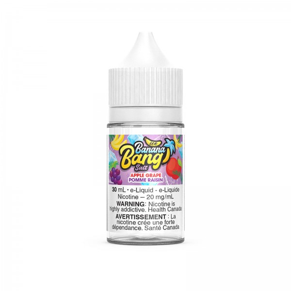 DescriptionApple Grape Ice SALT Banana Bang Ice E-Liquid is a fruity sensation made of refreshing crisp apples, juicy purple grapes, rich and smooth bananas, served in a ice-cold e-liquid.Banana Bang Salt is NOT intended for use in Sub-Ohm Tank systems. Banana Bang Salt E-Liquid is intended for smal..