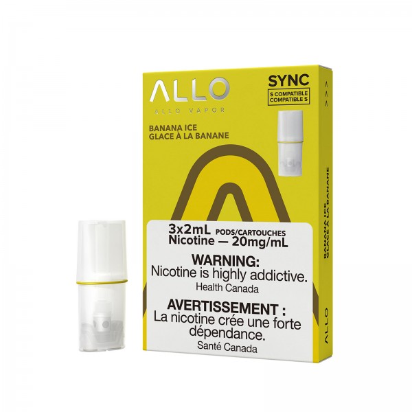 DescriptionBanana Ice ALLO Sync Pods are made from the richest and smoothest bananas infused with a kick of icy menthol.It comes in a pack of 3 pre-filled 2mL closed pod, with a built-in mesh coil, providing exceptionally smooth and delicious vape experience.It offers 2 nicotine strength options: 20..